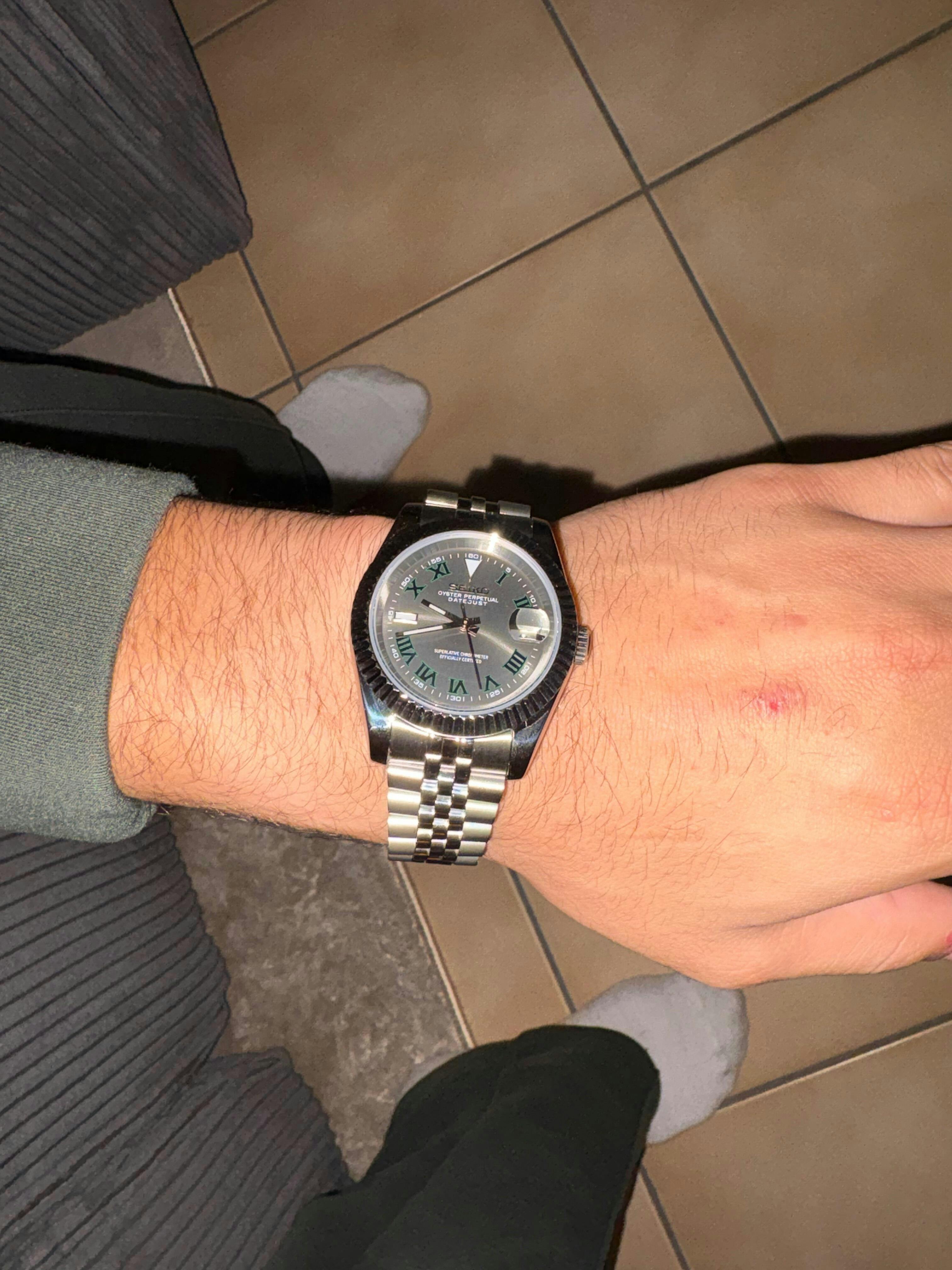 Discover the SeikoMod Datejust Wimbledon , an automatic watch with an iconic design inspired by the legendary DateJust and enhanced by black and green Roman numerals reminiscent of the world of the Wimbledon tournament. Featuring a 36 to 39 mm 316L stainless steel case , a notched bezel , a polished-brushed jubilee bracelet and a domed sapphire crystal with cyclops lens , it combines robustness and elegance. Its Seiko NH35 automatic movement, visible through the transparent case back, guarantees reliability and precision. Available in 4 dial variations , this Mod Seiko Wimbledon is perfect for lovers of automatic watches.