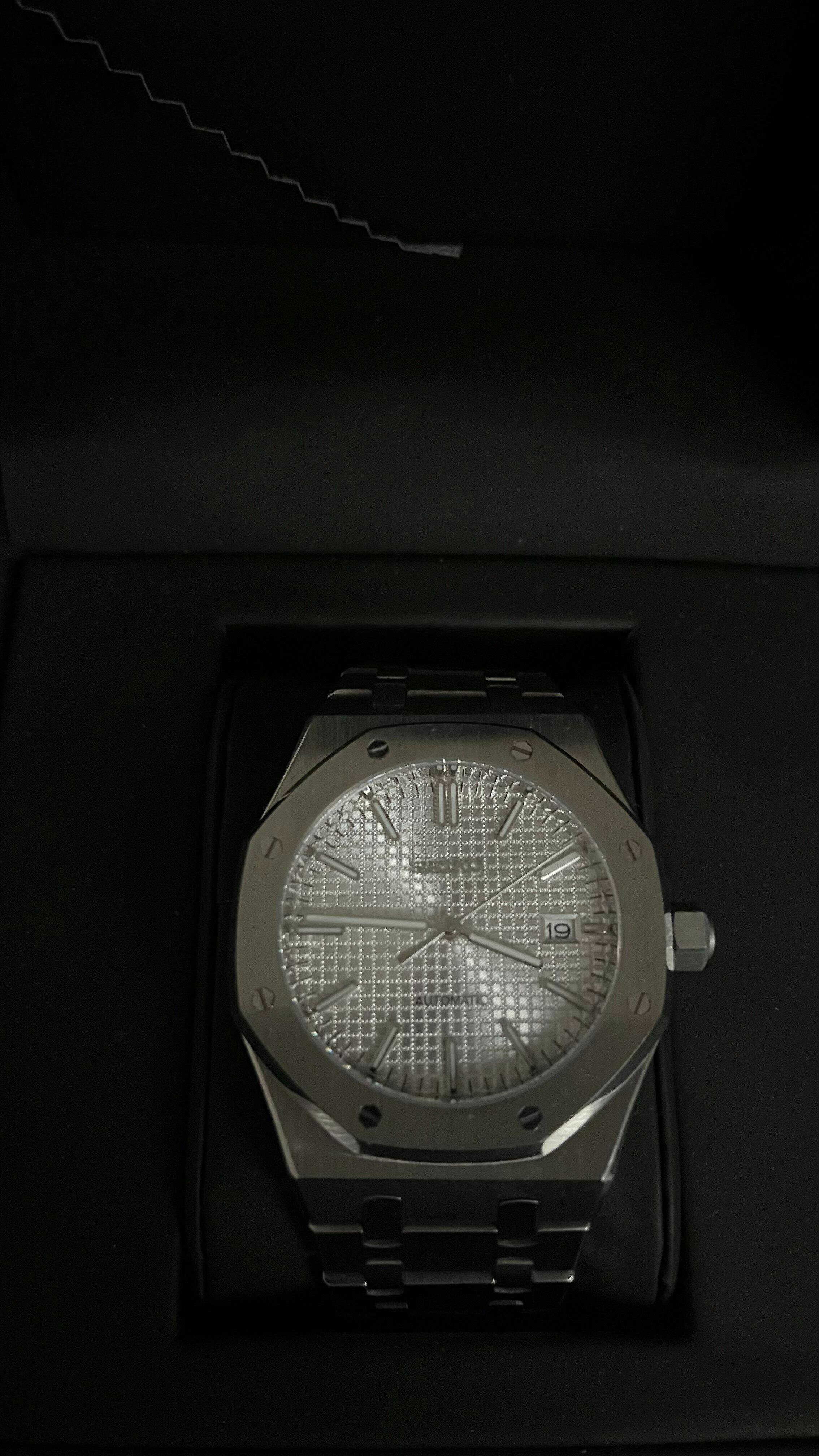 Discover the SeikoMod Royal Oak , an automatic watch inspired by an iconic design in luxury watchmaking. Its octagonal 316L stainless steel case , integrated bracelet and tapestry dial available in four colors (blue, black, white and green) give it a unique look. Equipped with the Seiko NH35 automatic movement , it ensures exceptional precision and reliability . This Royal Oak is perfect for enthusiasts looking for a high-end and elegant watch .